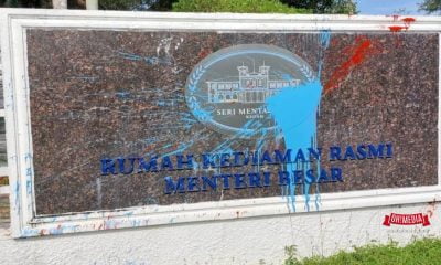 Pagar Kediaman Rasmi MB Kedah Kena Simbah Cat Biru Dan Merah
