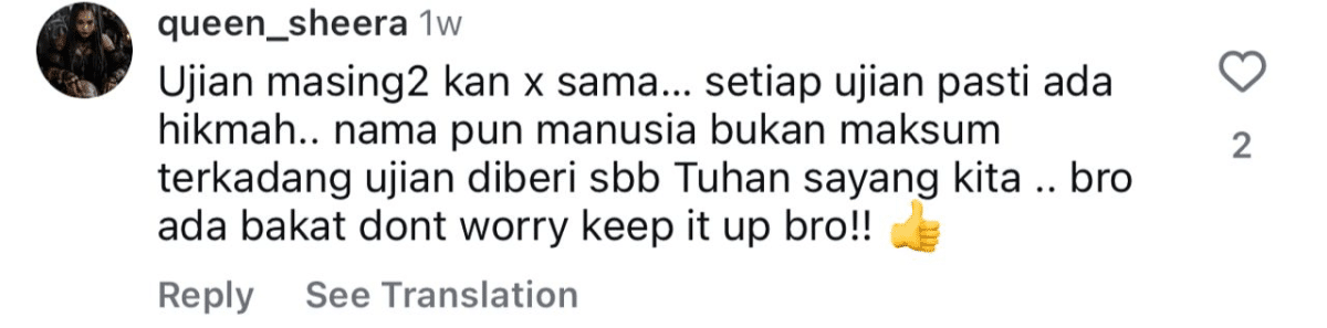 Namun begitu, dalam lautan kritikan, masih ada juga yang tampil memberikan kata-kata positif dan menyokong Aliff agar terus kuat menghadapi dugaan hidup.