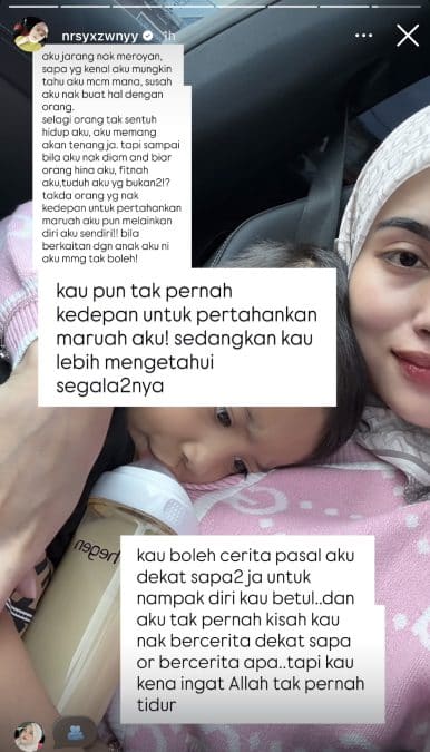 Menurut Syazwani lagi, dia tidak kisah jika ada orang bercerita tentang dirinya, namun apabila melibatkan anak, itu adalah perkara yang tidak boleh dikompromi.
