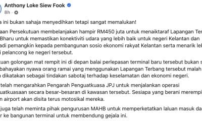 Anthony Loke berang lapangan terbang Kota Bharu jadi port mat rempit, arah JPJ sita motosikal.