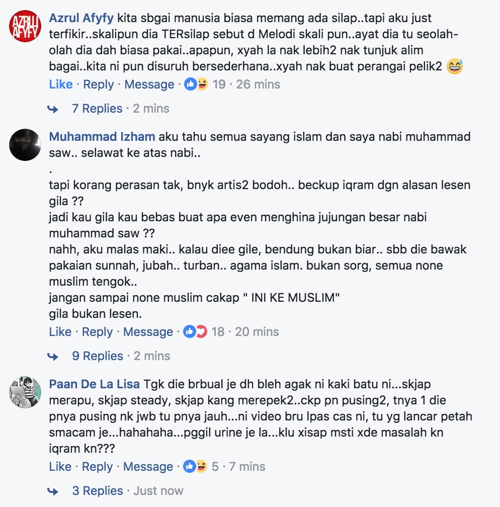 Kenyataan Iqram menerusi program Melodi semalam mengejutkan ramai pihak apabila menganggap tindakan pelakon drama Dunia Baru itu keterlaluan kerana menghina Nabi Muhammad.