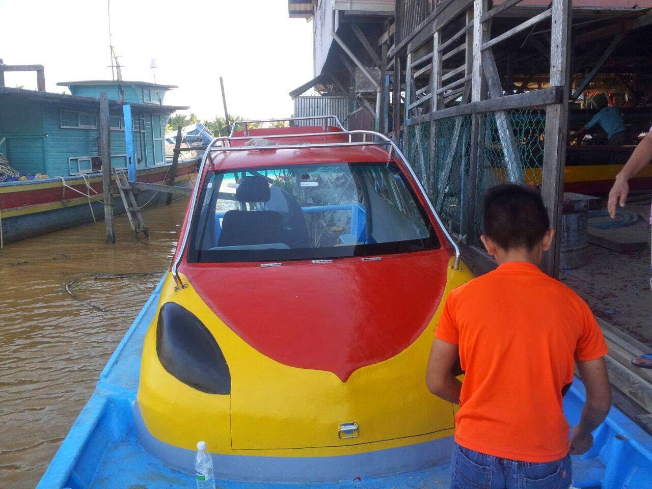 Lihat sahaja tiga gambar sampan dan dicipta dengan replika kereta produa Myvi ni. Cantik dan unik.